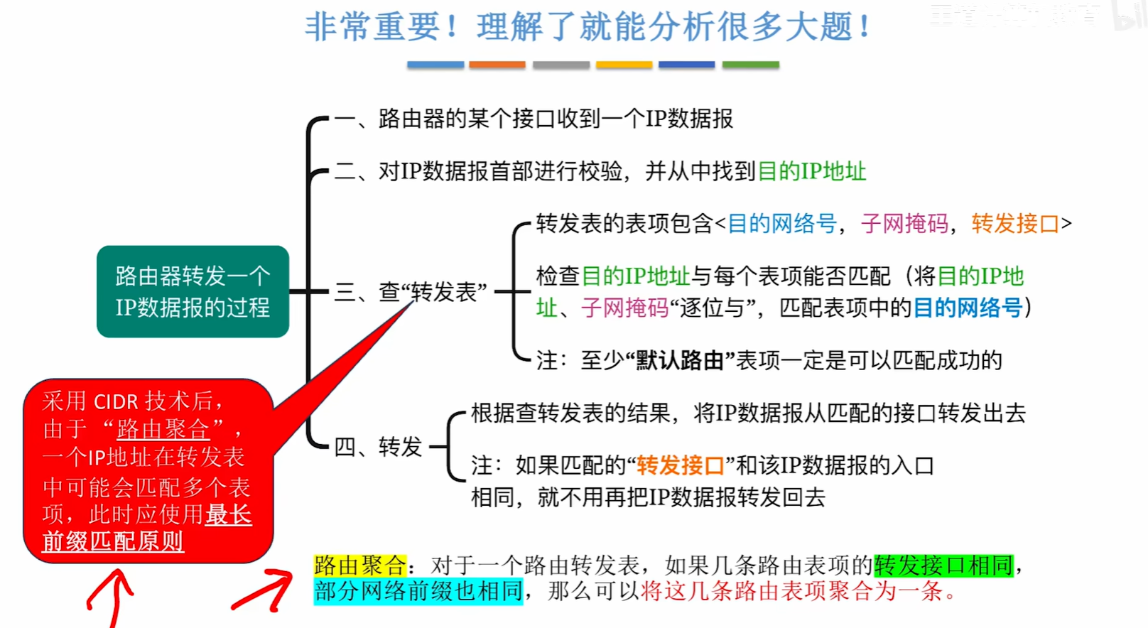 - 查找网络路由:这是最常规的路由条目,对应的是一个个网络地址(如192.168.1.0/24)。路由器会使用最长前缀匹配原则,即选择子网掩码最长的、最精确的路由条目进行转发。